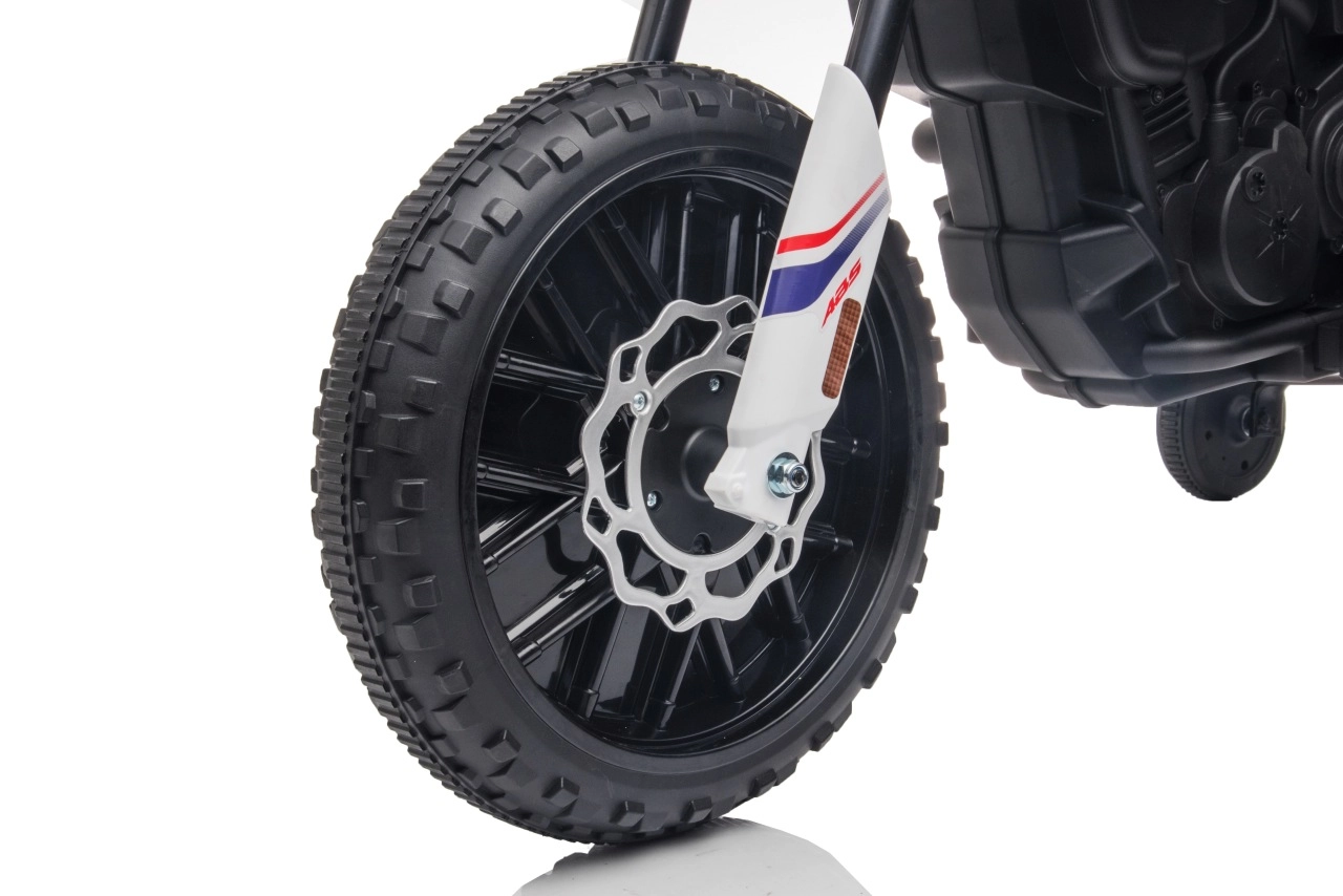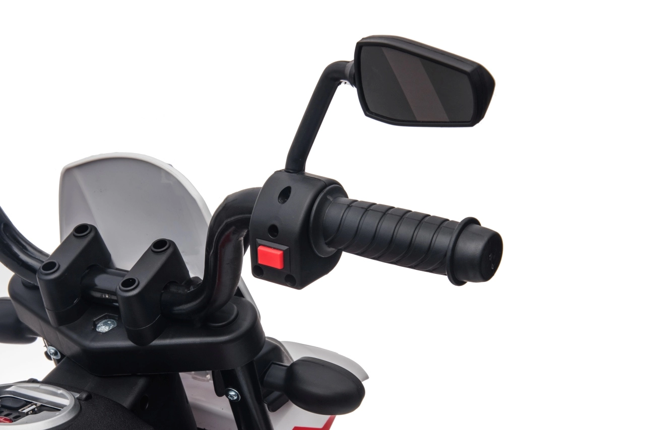 Doprajte deťom prvé motorkárske zážitky s elektrickou motorkou APRILIA RX v bielej farbe. Robustná konštrukcia, široké pneumatiky a stabilizačné kolieska podporujú istotu a rovnováhu začínajúcich jazdcov. Tiché EVA kolesá, zadný tlmič a plynulý rozjazd poskytujú pohodlnú a bezpečnú jazdu doma aj vonku.