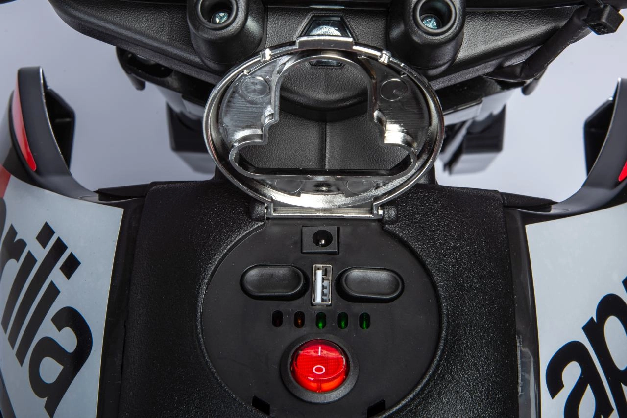 - Komfort a štýl: mäkké sedadlo z eko kože, realistické detaily APRILIA, ergonomické riadidlá.