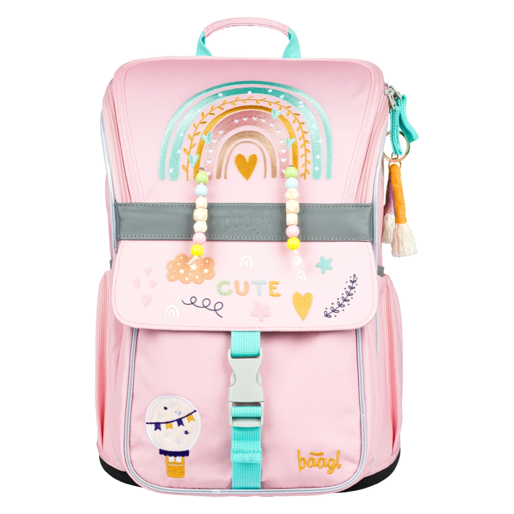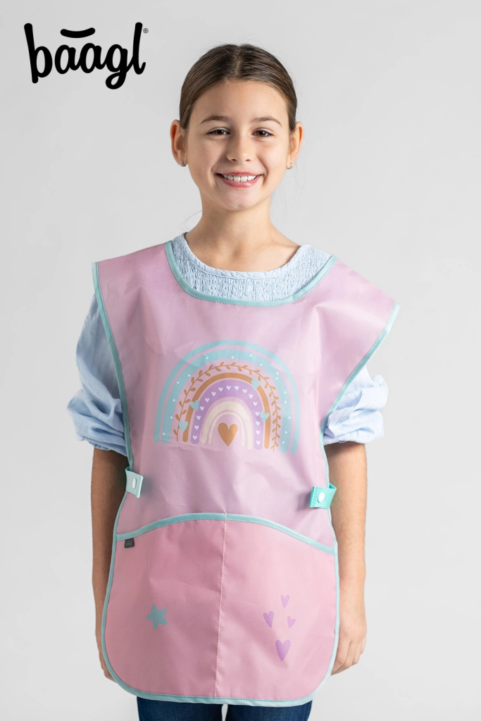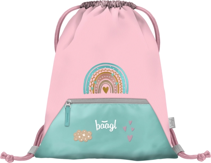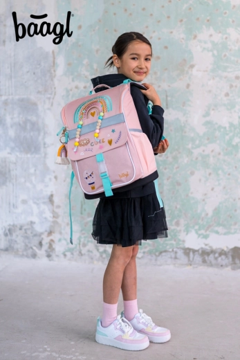 Štýlový školský set BAAGL Zippy Dúha v ružovej farbe pre prvý stupeň ZŠ zahŕňa všetko, čo deti potrebujú: ergonomickú aktovku s nastaviteľným chrbtovým systémom, jednoposchodový peračník, praktické vrecko na chrbát s vreckom, umývateľnú detskú zásteru a peňaženku na krk. Vďaka reflexným prvkom, ľahkej konštrukcii a premyslenej organizácii je set komfortný, bezpečný a pripravený na každý školský deň.