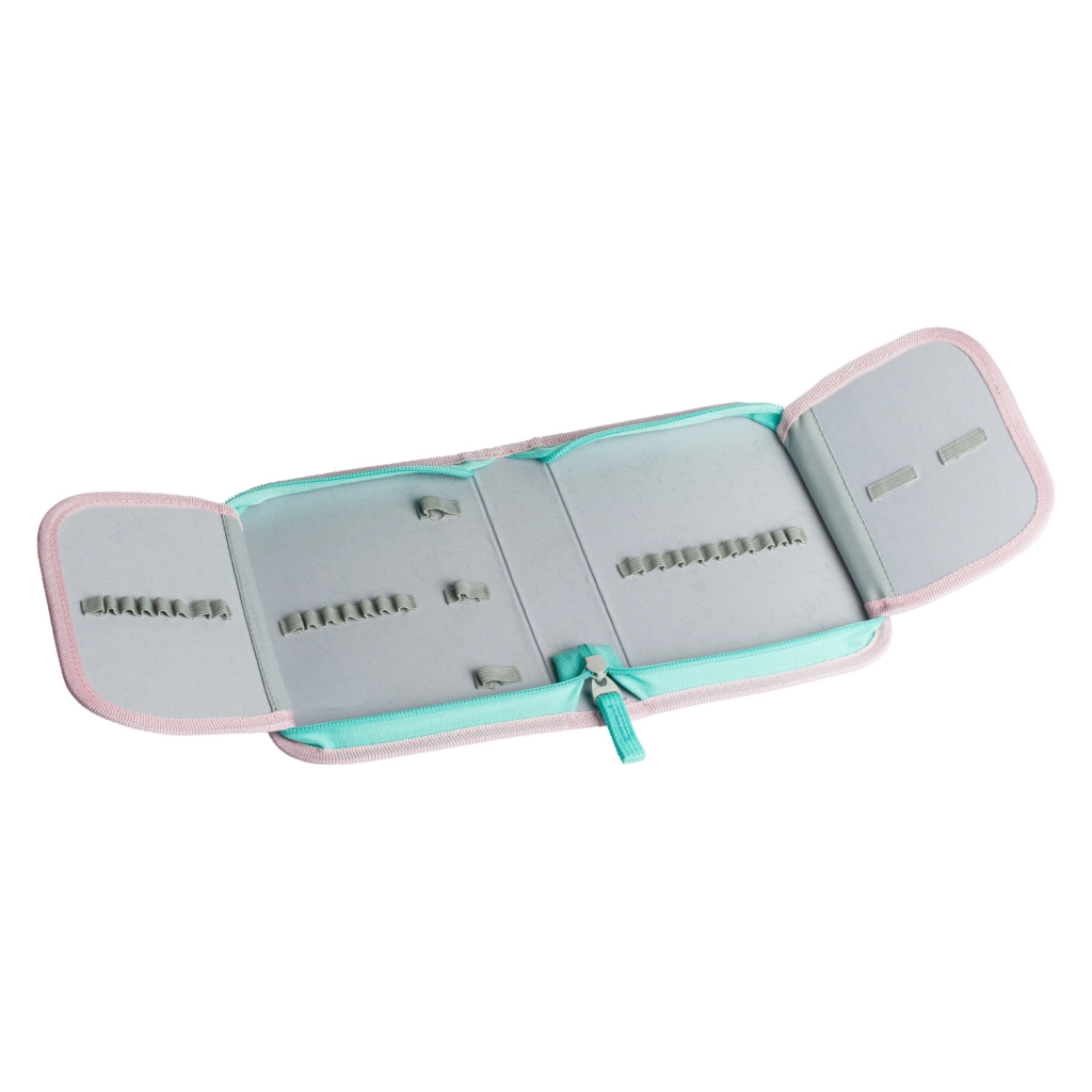 Výklopné otváranie pre ľahké vybratie pomôcok z lavice, vnútorný organizér s gumičkou a priehľadné vrecko na rozvrh udržia všetko na svojom mieste.