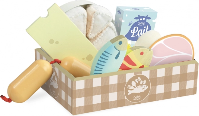Urobte radosť svojim deťom sadou kvalitných drevených potravín, ktorá prináša kúsok reality do ich hracej kuchynky. Sada obsahuje: