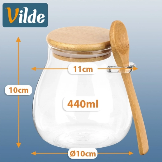 Sada dvoch sklenených pohárov s objemom 440 ml s bambusovým viečkom a integrovanou lyžičkou je ideálna na jogurty, dezerty, džemy, med aj koreniny. Tesniace viečko udrží obsah dlhšie čerstvý, praktický držiak na lyžičku zabezpečí, že ju budete mať vždy poruke.