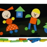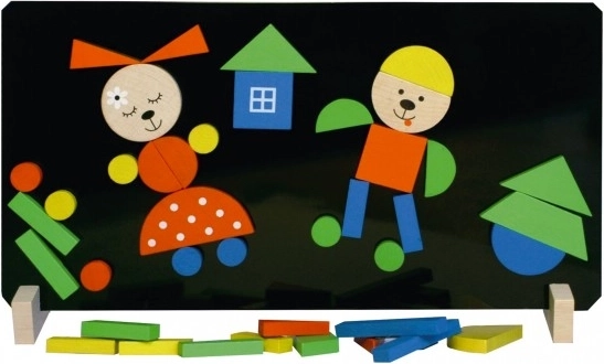 Magnetická tabuľka a drevené dieliky sú kľúčovými súčasťami tejto sady. Tieto dieliky s magnetom umožňujú deťom zostavovať rôzne motívy a príbehy. Sada nie je vhodná pre deti do 3 rokov, obsahuje malé časti, ktoré môžu predstavovať nebezpečenstvo prehltnutia.