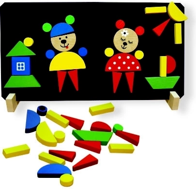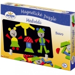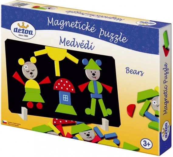 Magnetické puzzle Medvede ponúka zábavný a kreatívny spôsob, ako rozvíjať jemnú motoriku a predstavivosť detí. Sada obsahuje magnetickú tabuľku a 37 drevených dielikov, z ktorých je možné vytvárať rôzne obrázky.