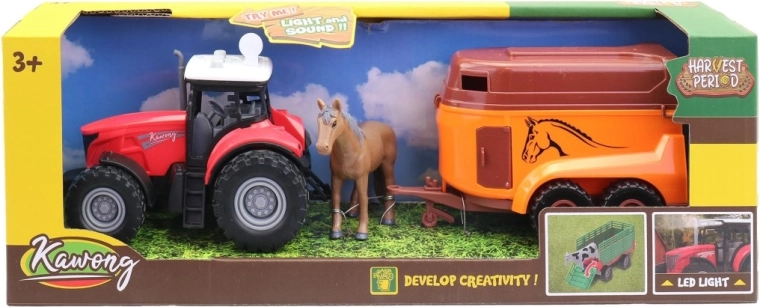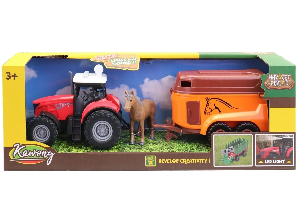 Elektrický traktor s prívesom na prevoz koní je skvelá hračka pre malých milovníkov farmy. Vďaka realistickému vzhľadu a praktickému prívesu deti ľahko zapoja fantáziu a vytvoria si vlastné príbehy. Hračka je vyrobená z odolného plastu a dodáva sa v atraktívnom displejovom boxe – ideálna aj ako darček.