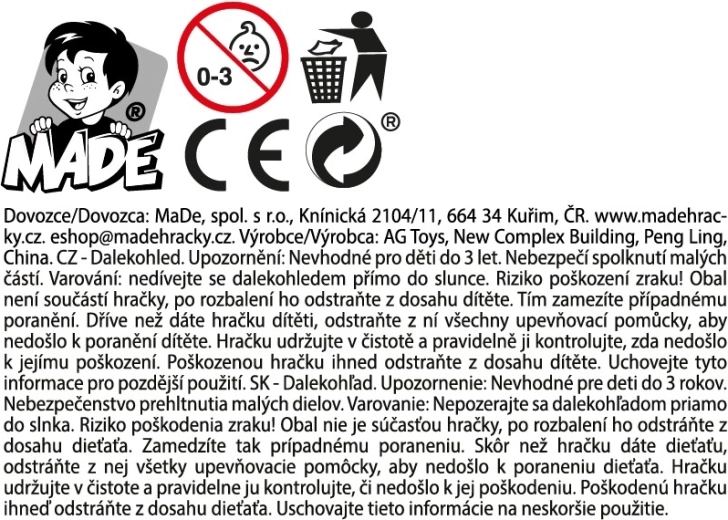 Objavujte svet s ľahkým a odolným detským ďalekohľadom pre malých dobrodruhov od 3 rokov. Vďaka kompaktným rozmerom je ľahko prenosný, ideálny na výlety aj hry. Balenie obsahuje 6 kusov v display boxe, ktorý je skvelý na prehľadnú prezentáciu v predajniach či na akciách. Ľahký plast zabezpečuje pohodlné držanie a bezpečné používanie.