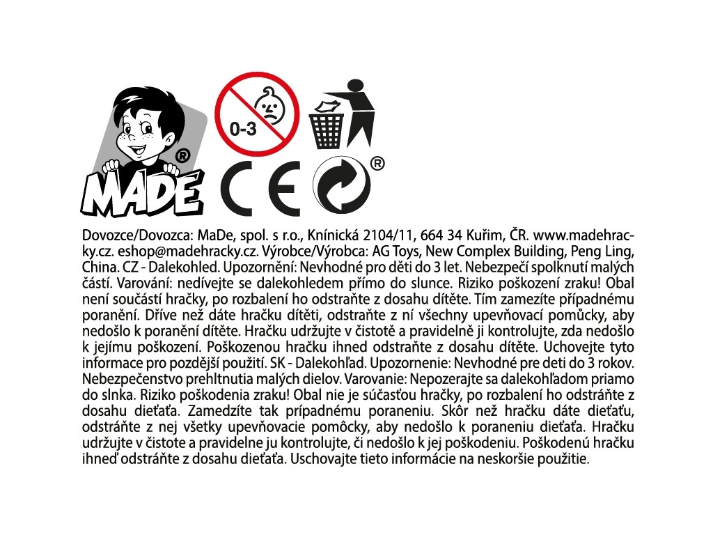 Tento detský ďalekohľad je navrhnutý tak, aby podporil zvedavosť a hravú fantáziu. Vďaka nízkej hmotnosti a odolnému plastovému vyhotoveniu sa skvele hodí na prechádzky, výlety do prírody aj záhradné dobrodružstvá. Kompaktné rozmery 12 × 15 × 4 cm uľahčujú prenášanie v batôžku aj v ruke.