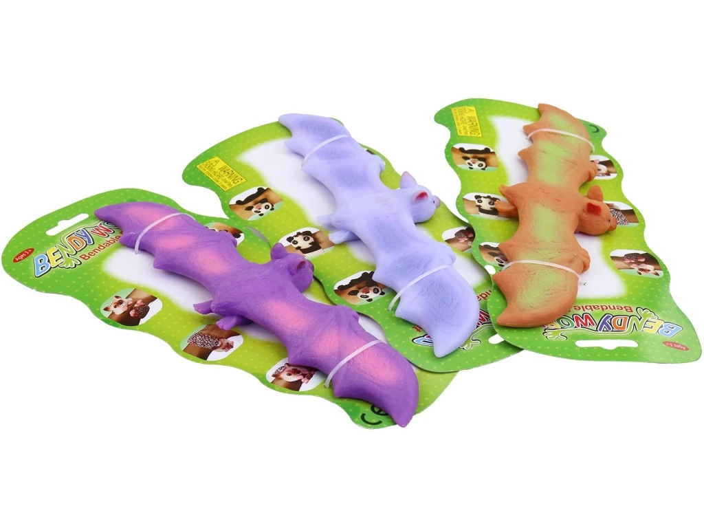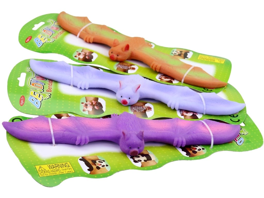Zábavná a bezpečná hračka pre deti od 3 rokov: ohnuteľný netopier z mäkkej gumy s dĺžkou cca 25 cm. Skvele sa naťahuje, stláča a ohýba, pomáha uvoľniť napätie a zabaviť ruky. Dodáva sa v pestrých farbách a je balený na karte pre jednoduché skladovanie a darovanie.