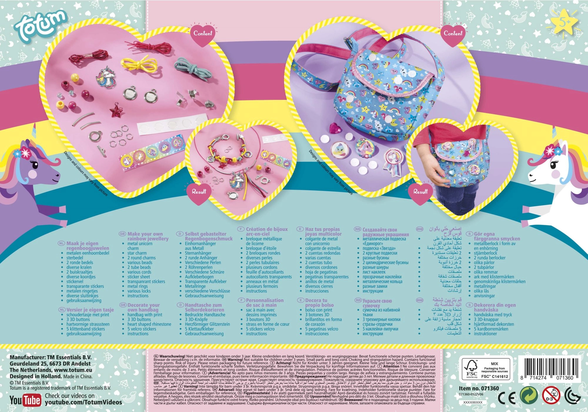 Rozvíjajte detskú fantáziu s kreatívnou sadou 2v1 s motívom jednorožca od značky TOTUM. Deti si vyrobia vlastné šperky a ozdobia látkovú kabelku pomocou doplnkov. Sada podporuje jemnú motoriku, kreativitu a estetické cítenie.