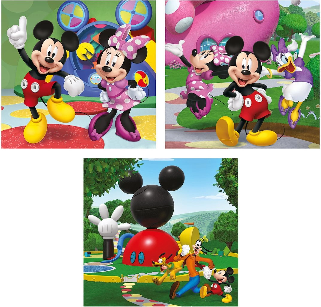 Objavte s deťmi radosť zo skladania s puzzle CLEMENTONI s motívmi MICKEYHO KLUBÍKU. Každé z trojice puzzle má rovnaký počet dielikov a zhodný formát, takže deti získajú istotu a môžu postupne zdokonaľovať svoje zručnosti. Kvalitná lepenka a precízna tlač zabezpečujú odolnosť a stálosť farieb aj po opakovanom skladaní.
