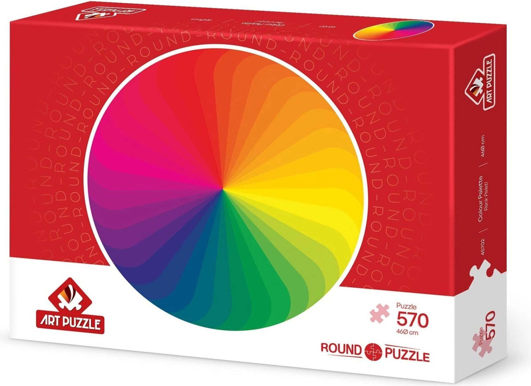Táto farebná skladačka v kruhovom formáte ponúka svieži dizajn a plynulé farebné prechody, ktoré potešia oko aj myseľ. So 570 presne vyrezanými dielikmi je puzzle perfektnou voľbou na pokojné chvíle oddychu aj spoločné skladanie s rodinou.
