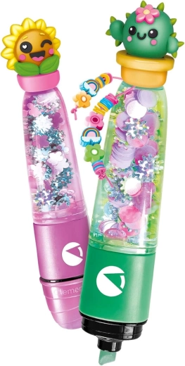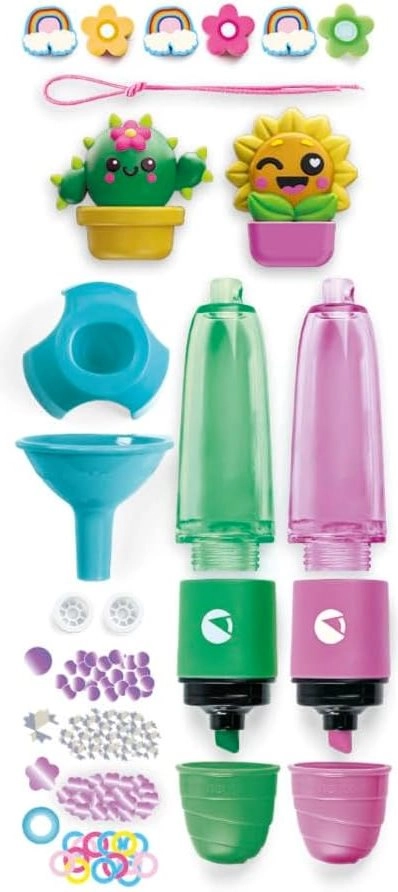 S touto sadou si deti zložia a dozdobia dva unikátne zvýrazňovače, do ktorých priehľadných teliesok môžu pridať trblietky, koráliky a plávajúce ozdoby. Roztomilé toppers v tvare kaktusu a slnečnice premenia každé písanie na hru a zvýrazňovanie na štýlovú zábavu.