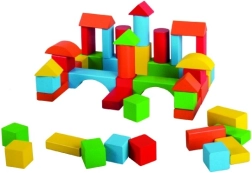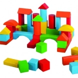 Farebná drevená stavebnica obsahuje 50 kvalitne opracovaných kociek rôznych tvarov pre malých staviteľov. Podporuje jemnú motoriku, kreativitu a priestorovú predstavivosť. Vyrobené z bezpečného dreva, spĺňa normy EÚ a je vhodné pre deti od 2 rokov.