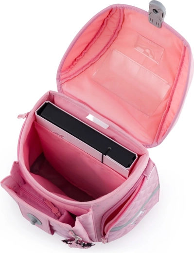 Praktická výbava zahŕňa magnetické zapínanie pre jednoduchú manipuláciu, vnútorný rozdeľovač, dostatok vreciek a reflexné prvky pre lepšiu viditeľnosť. Súčasťou sady je tiež sťahovacie vrecko na úbory či prezuvky a jednoposchodový peračník s dvoma chlopňami bez náplne, s gumenými pútkami a priehľadnou fóliou na rozvrh hodín.