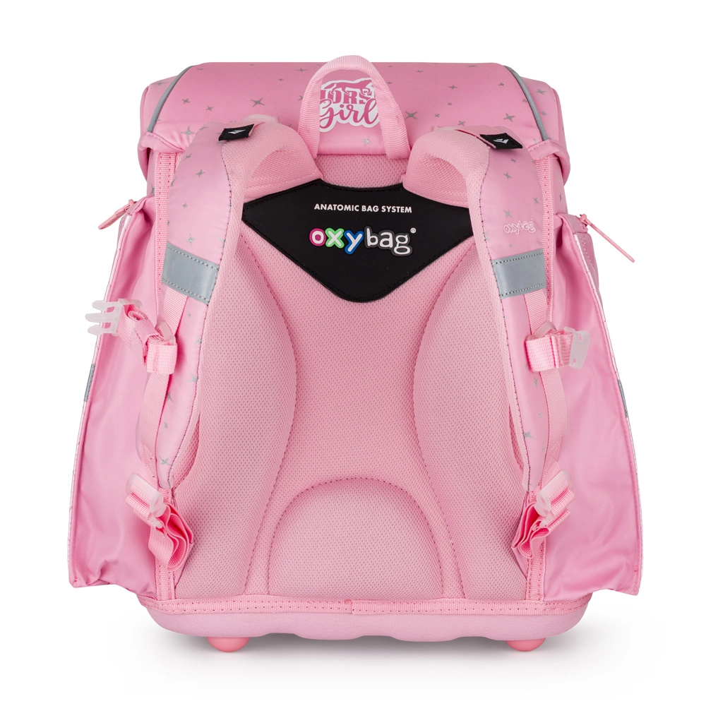Školský set PREMIUM LIGHT – Horse Girl zaujme pôvabným romantickým dizajnom v ružových tónoch a motívom bieleho koňa. Hlavná aktovka ponúka ergonomicky tvarovaný chrbát z priedušného materiálu, široké polstrované popruhy s hrudným aj prítlačnými popruhmi pre perfektné usadenie a rovnomerné rozloženie záťaže. Vďaka odľahčenej konštrukcii je ideálna pre najmladšie školáčky od výšky cca 121 cm.
