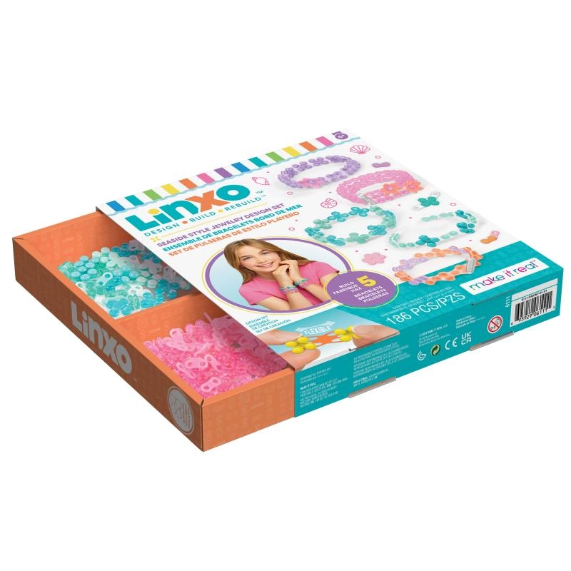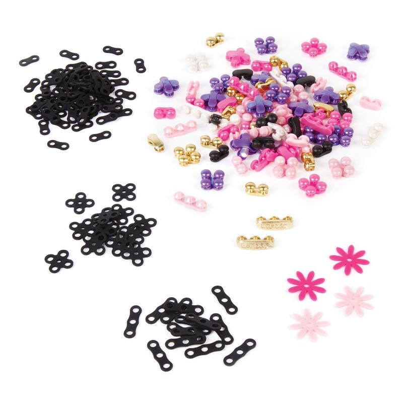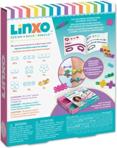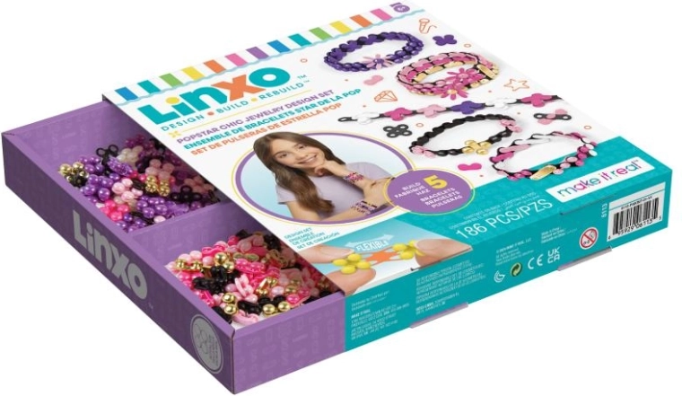 Sada šperkov Linxo prináša deťom možnosť vyjadriť vlastný štýl. Vďaka šikovnému systému zacvakávacích spojov možno dieliky jednoducho kombinovať, upravovať dĺžku a kedykoľvek všetko rozobrať a znova postaviť. Vytvorte originálne náramky, prívesky či drobné ozdoby, ktoré možno mixovať a vrstviť.