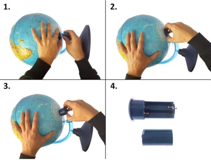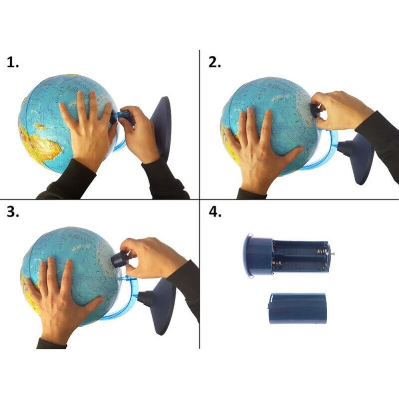 Vstavané LED osvetlenie vkladané zdola premení glóbus na pôsobivú nočnú mapu – ideálne na večerné učenie aj ako dekoráciu izby.