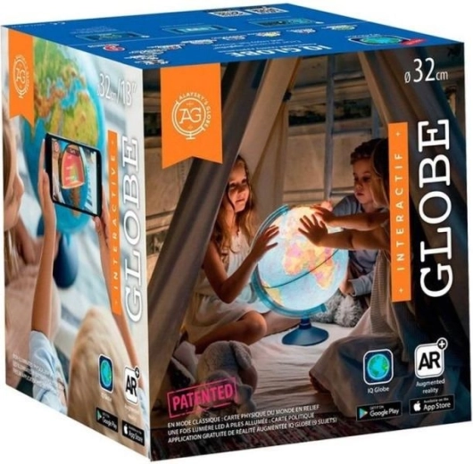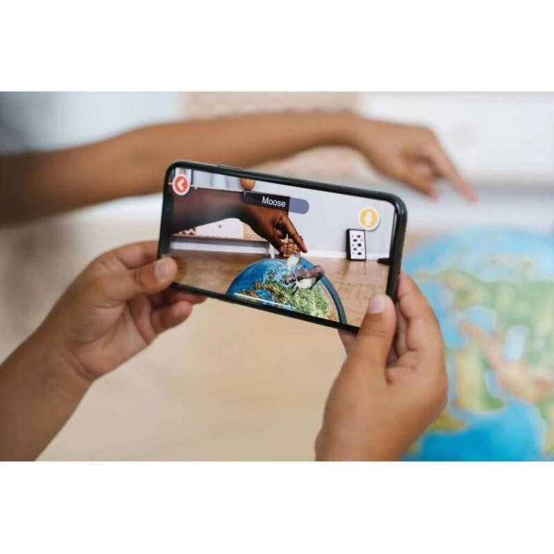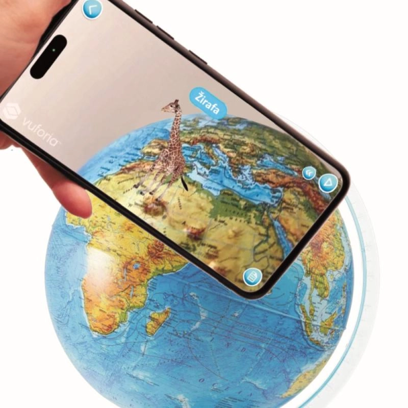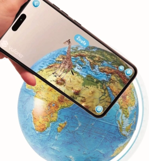 S aplikáciou IQ GLOBE v rozšírenej realite preskúmate 10 vzdelávacích okruhov vrátane suchozemskej fauny a flóry, Pangei, dinosaurov, morského života, slnečnej sústavy, kozmodrómov, svetových pamiatok, prírodných monumentov, krajín a vlajok aj legendárnych objaviteľov. Aplikácia podporuje 12 jazykov vrátane slovenčiny a ponúka slovenský hlasový komentár. Stačí namieriť telefón na Európu zo vzdialenosti 30–40 cm a témy sa zobrazia priamo na glóbuse.