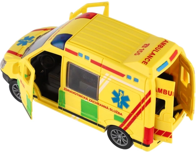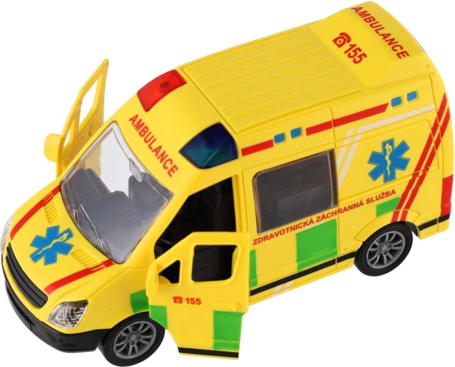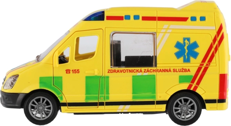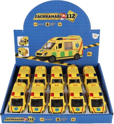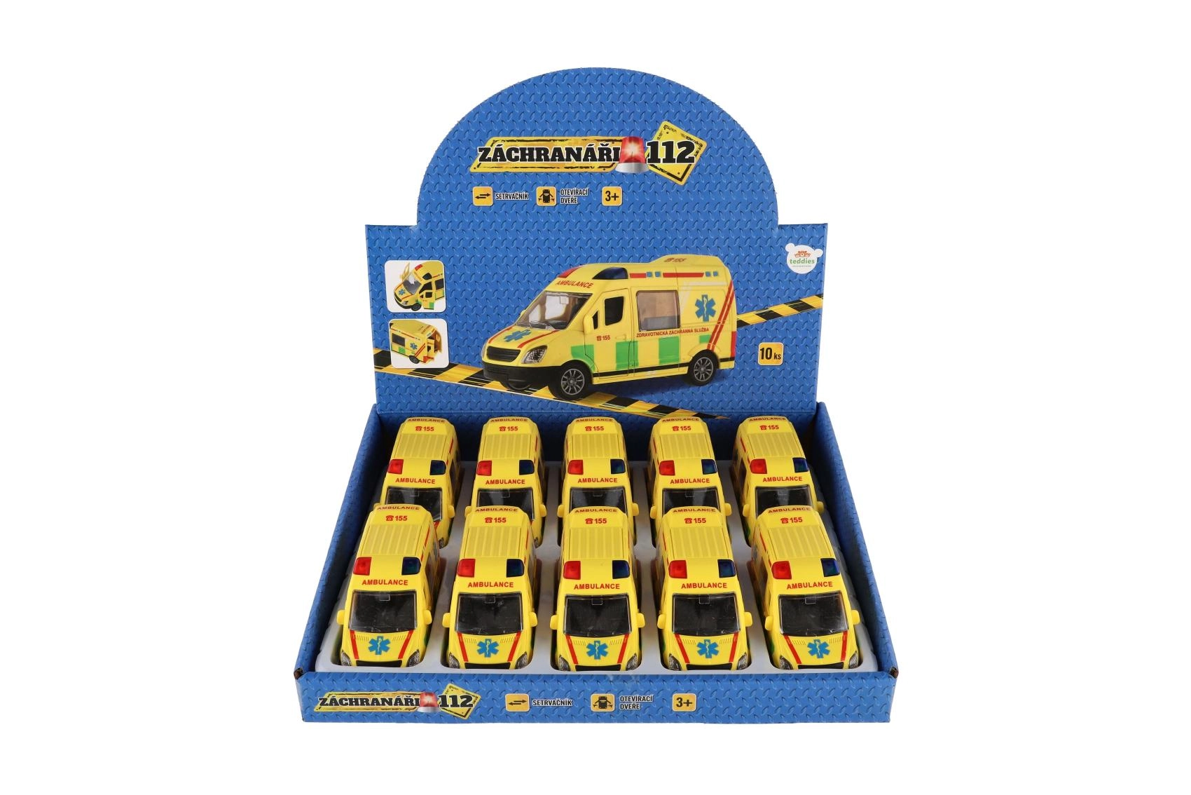 Záchranná misia sa môže začať! Táto plastová sanitka s dĺžkou 12 cm poteší všetkých malých záchranárov. Vďaka zotrvačníku stačí autíčko natiahnuť dozadu a samo sa rýchlo rozbehne vpred. Realistické prevedenie s nápisom Ambulance a motívmi zdravotnej záchrannej služby robí z tohto modelu skvelý doplnok do detskej zbierky. Balenie obsahuje 10 ks v praktickom boxe.