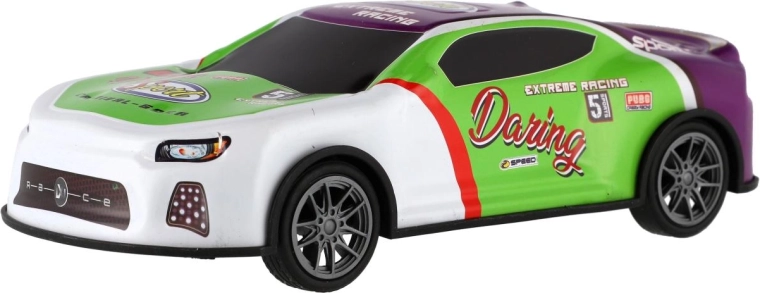 Rýchle plastové závodné autíčko s dĺžkou 17 cm so zotrvačníkom pre jednoduchú jazdu vpred. Stačí natiahnuť, pustiť a užiť si kopec zábavy doma aj na cestách. Športový dizajn, výrazné farby a hladká jazda na rovnom povrchu z neho robia skvelý darček pre malých pretekárov.