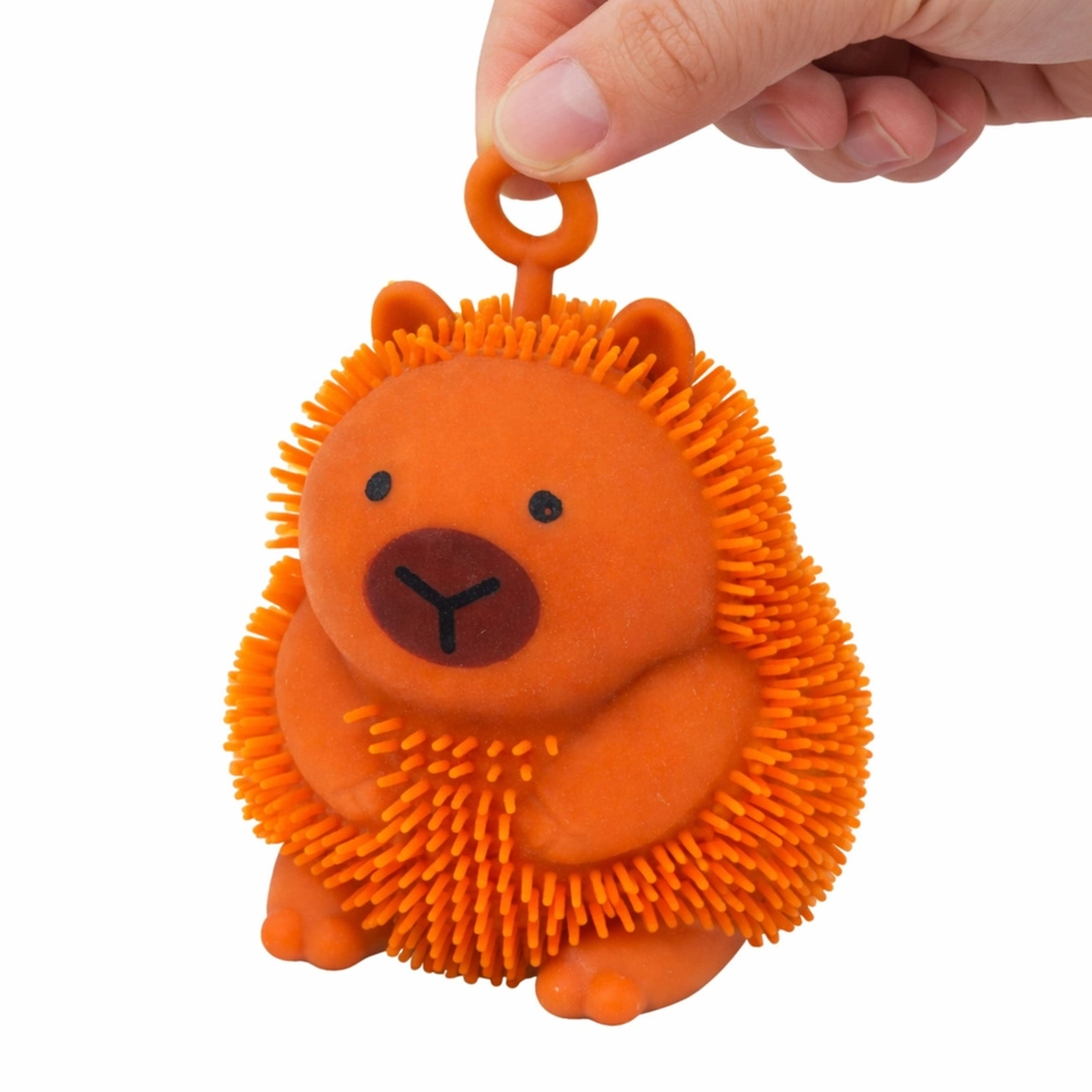 Senzorická kapybara je ideálna antistresová hračka pre deti aj dospelých. Mäkké, elastické telo sa skvele prispôsobí dlani a po stlačení sa rýchlo vracia do pôvodného tvaru. Vnútorná gulička s LED diódou sa pri odraze rozbliká pestrými farbami, čo z hračky robí atraktívneho parťáka na každodenné hranie aj upokojenie.