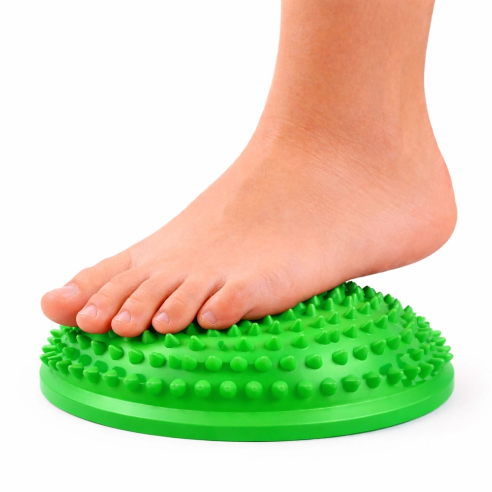 Senzorická polguľa kombinuje balančný tréning a cielenú stimuláciu chodidiel. Polguľovitý tvar s hustými mäkkými výstupkami poskytuje príjemnú masáž, ktorá podporuje cirkuláciu krvi, aktiváciu svalov klenby a lepšiu propriocepciu. Hodí sa na domáce použitie, fyzioterapiu, materské školy aj školy a cvičenie korekcie držania tela.