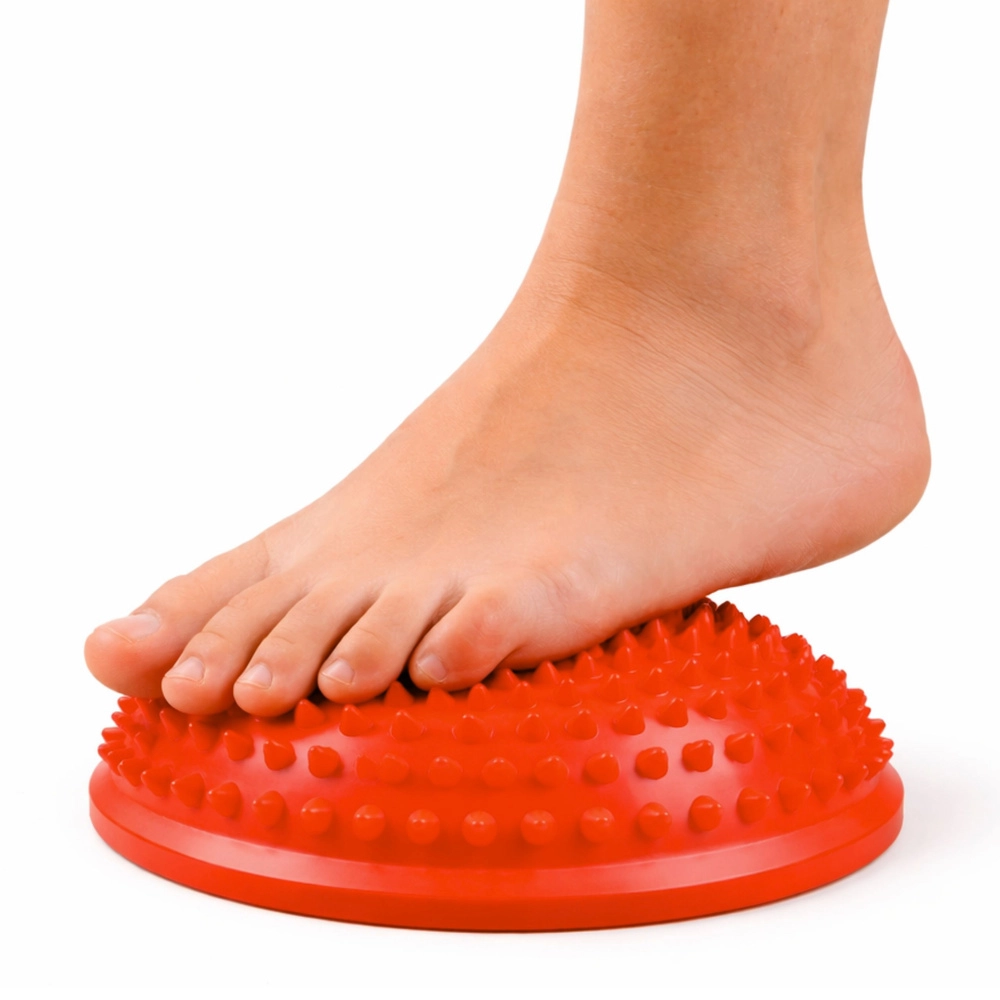 Univerzálna senzorická balančná polguľa na tréning rovnováhy, stabilizácie a masáž chodidiel. Vďaka textúrovaným masážnym výstupkom stimuluje receptory, zlepšuje prekrvenie a podporuje správne držanie tela. Vhodná na rehabilitáciu, fyzioterapiu aj domáce cvičenie.