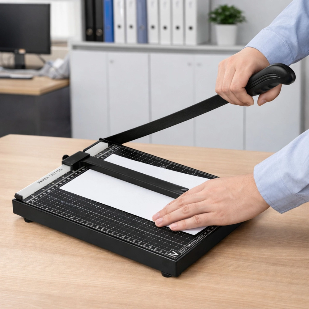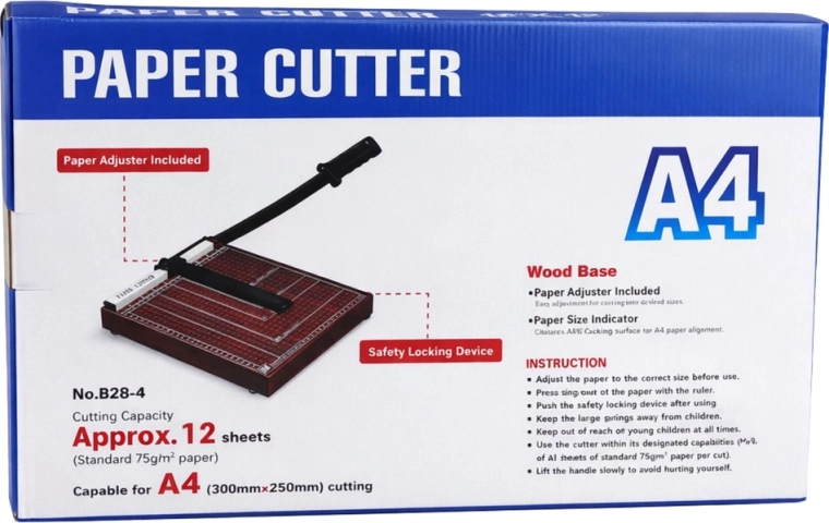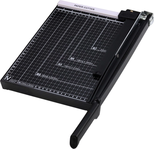 Táto gilotína na papier A4 je ideálna do kancelárie, školy, tlačiarne aj domácej dielne. Stabilná základňa s meracími líniami a značkami formátov pomáha presne nastaviť dokument pred rezom. Kovové rezné rameno s dlhou pákou uľahčuje čistý a rovný rez bez vynaloženia veľkej sily.