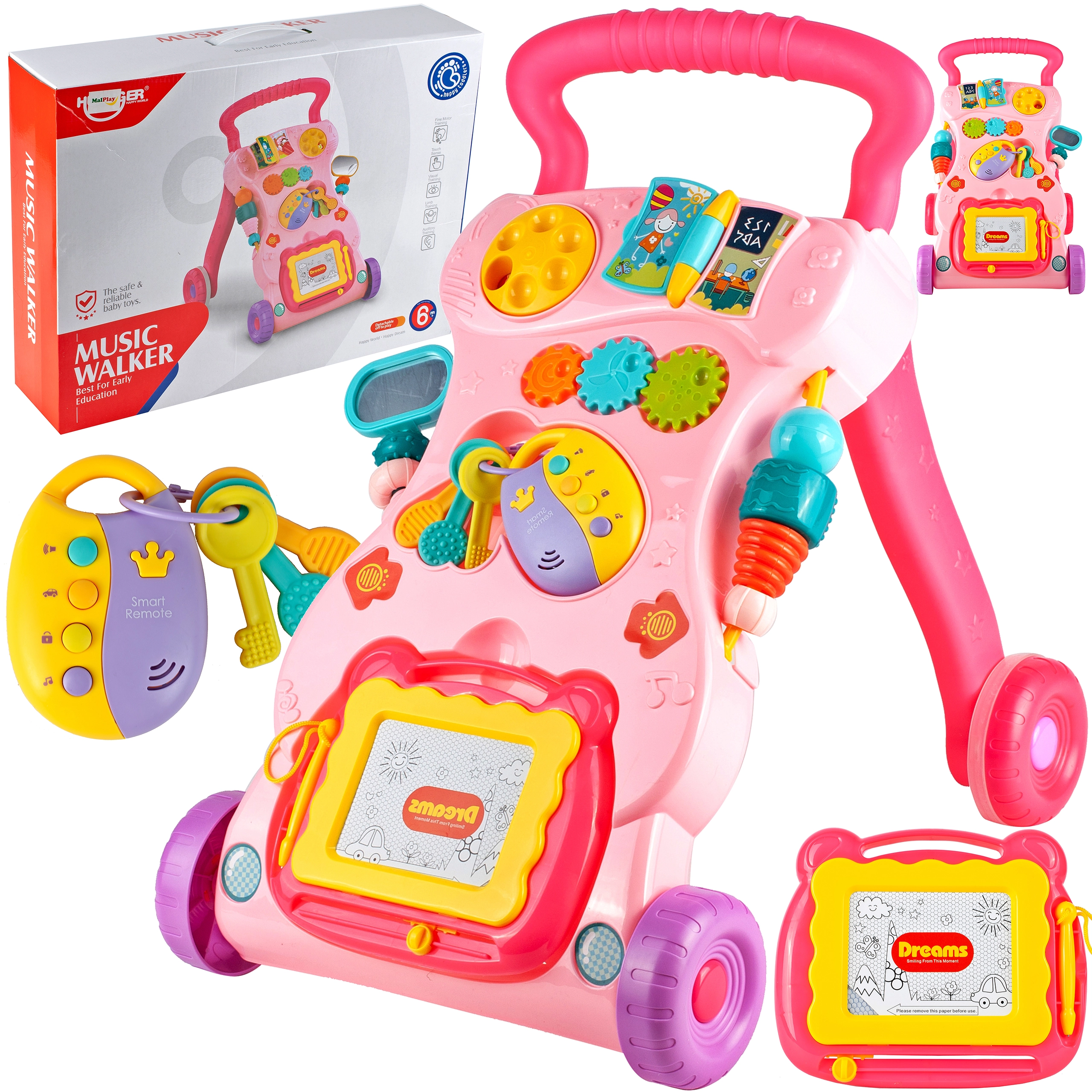 Podporte prvé krôčiky vášho dieťaťa s chodítkom, ktoré spája bezpečnosť, zábavu a učenie. Ružové prevedenie, odnímateľná interaktívna tabuľa a kľúče lákajú k objavovaniu, zatiaľ čo 12 melódií motivuje k ďalšiemu pohybu. Vďaka kompaktným rozmerom sa ľahko používa doma aj na cestách.