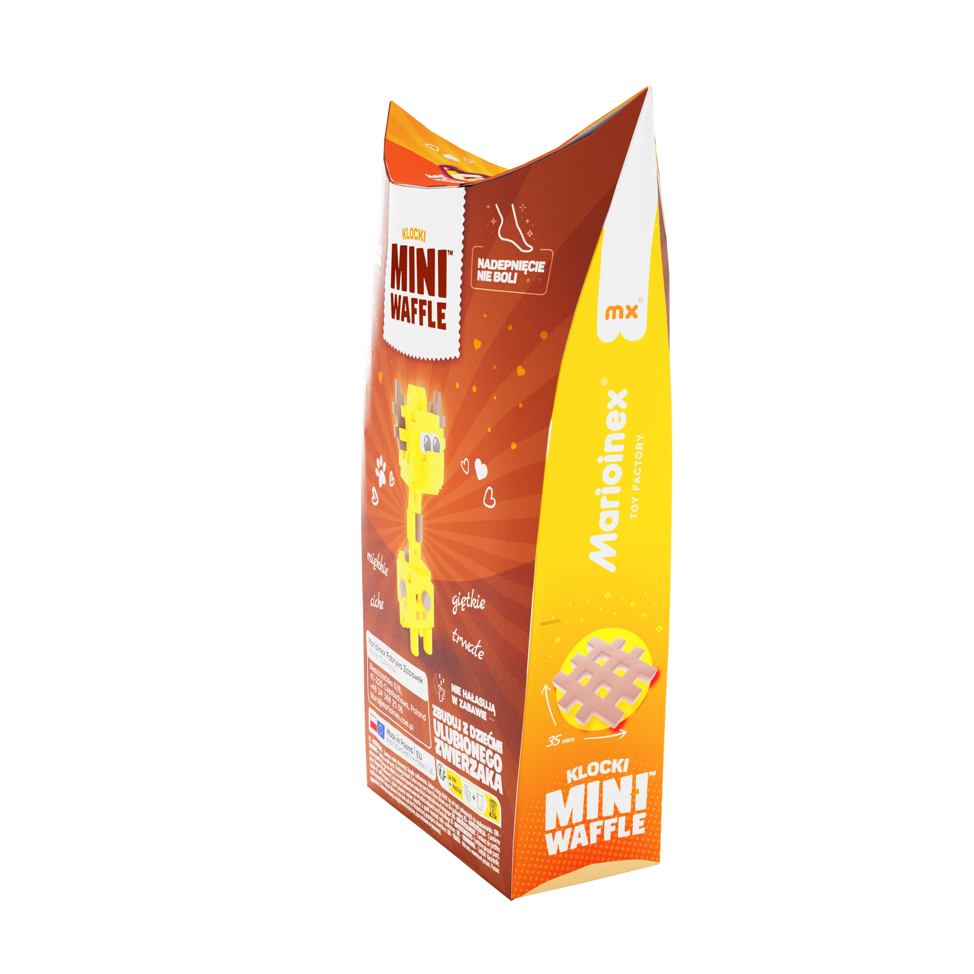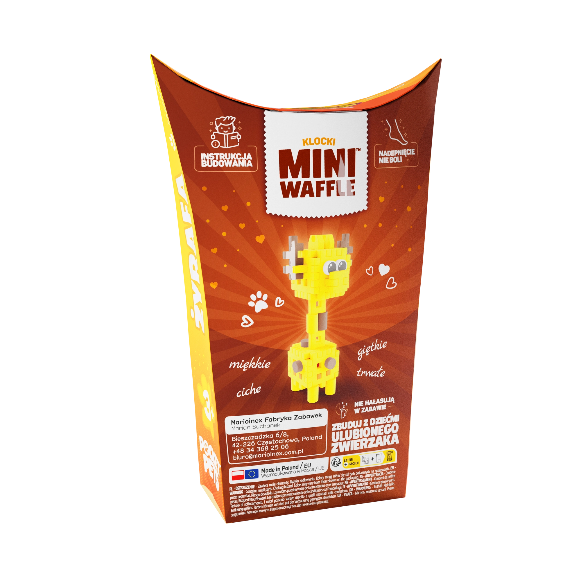 Objavte kreatívny svet so stavebnicou Mini Waffle Pocket Pets – žirafa od značky Marioinex. Tento kompaktný set s 35 farebnými dielikmi umožňuje stavať v 2D aj 3D, rozvíja jemnú motoriku, logické myslenie a predstavivosť. Dieliky sú elastické, odolné a bezpečné, ľahko sa spájajú a rozpájajú – ideálne na opakované stavenie doma aj na cestách.