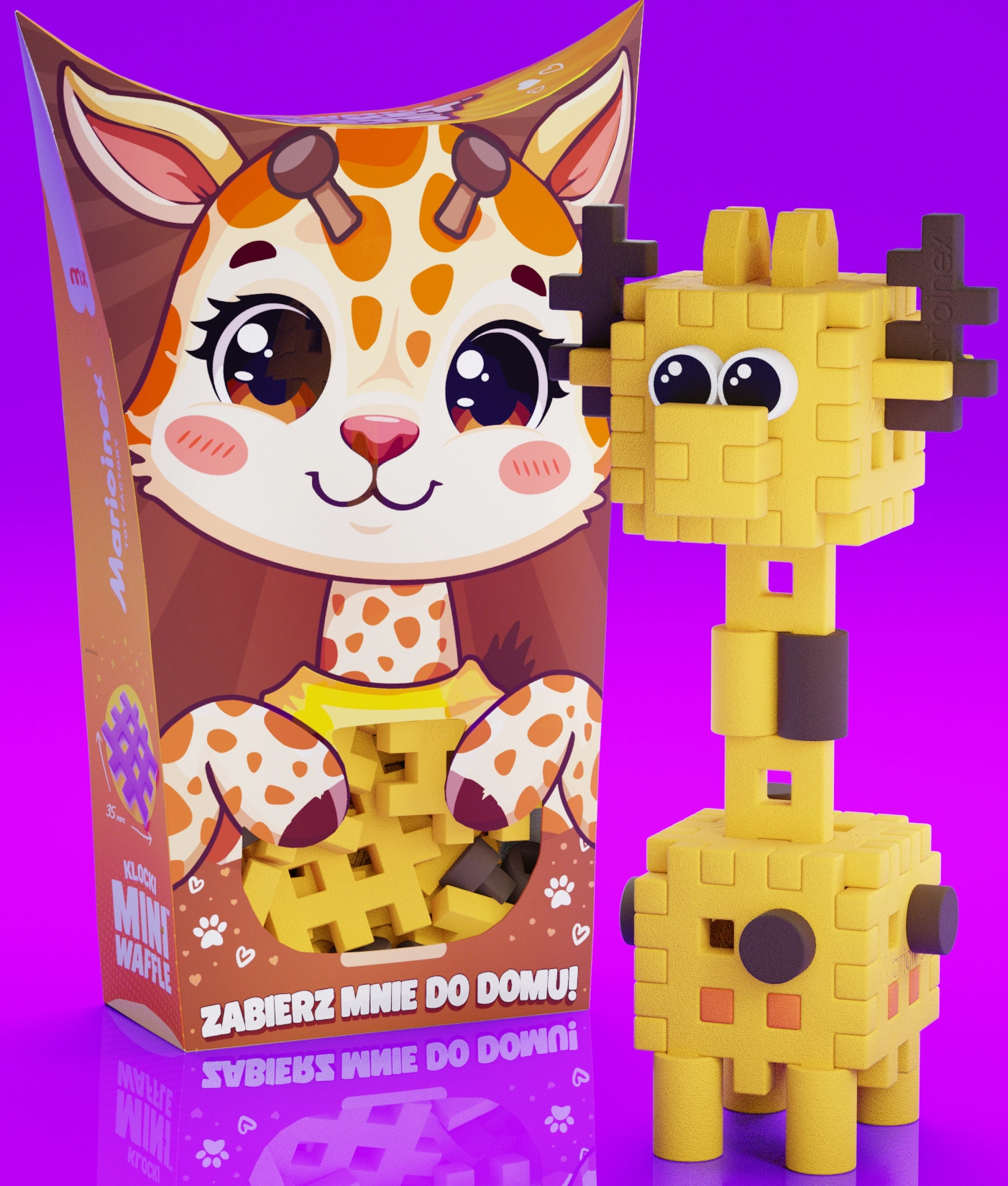 Vytvorte si rozkošnú figúrku žirafy a zapojte ju do vlastných príbehov alebo ju skombinujte s ďalšími zvieratkami zo série Pocket Pets. Stavebnica Mini Waffle je navrhnutá tak, aby deti zábavnou formou rozvíjali kreativitu a koordináciu pohybov a pritom sa učili základy priestorového vnímania.