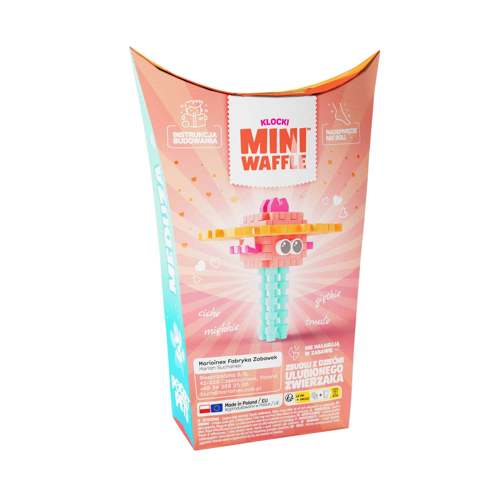 Objavte zábavu so stavebnicou Mini Waffle Pocket Pets – Medúza od značky Marioinex. Kompaktná sada s 25 farebnými dielikmi umožní deťom postaviť figúrku medúzy v 2D aj 3D, rozvíja kreativitu, jemnú motoriku a logické myslenie. Diely sú elastické, odolné a bezpečné a skvele pasujú k ďalším setom Mini Waffle.