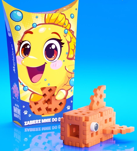 Obsah balenia: 16 dielikov Mini Waffle, podrobný návod krok za krokom na zostavenie rybky.