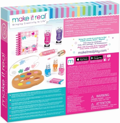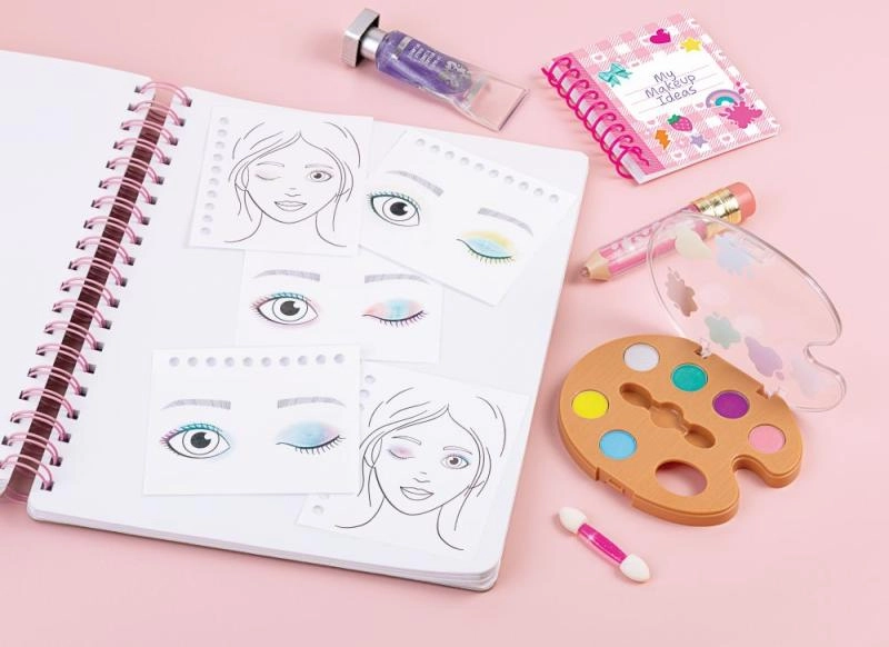 - Paleta očných tieňov s aplikátorom, lesky na pery, balzam/lesk v tvare ceruzky, 3× lak na nechty, pilník na nechty, skicár, samolepky/doplnky podľa balenia