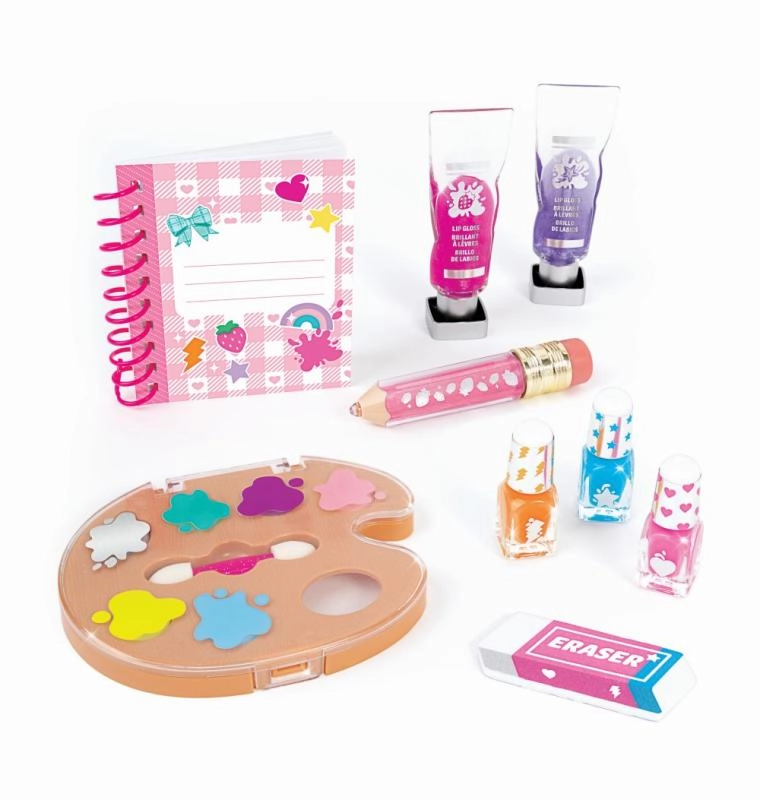 Súčasťou sú lesky na pery štýlizované ako maliarske tuby, tri laky na nechty v jasných odtieňoch a pilník na nechty v tvare gumy pre dokonale upravené nechty. Všetko je navrhnuté tak, aby podporilo kreatívnu hru, bezpečné experimentovanie a rozvoj štýlu u detí od 8 rokov.