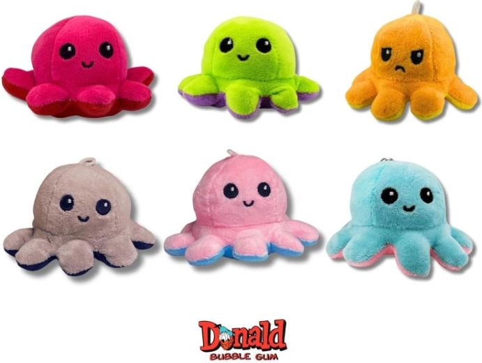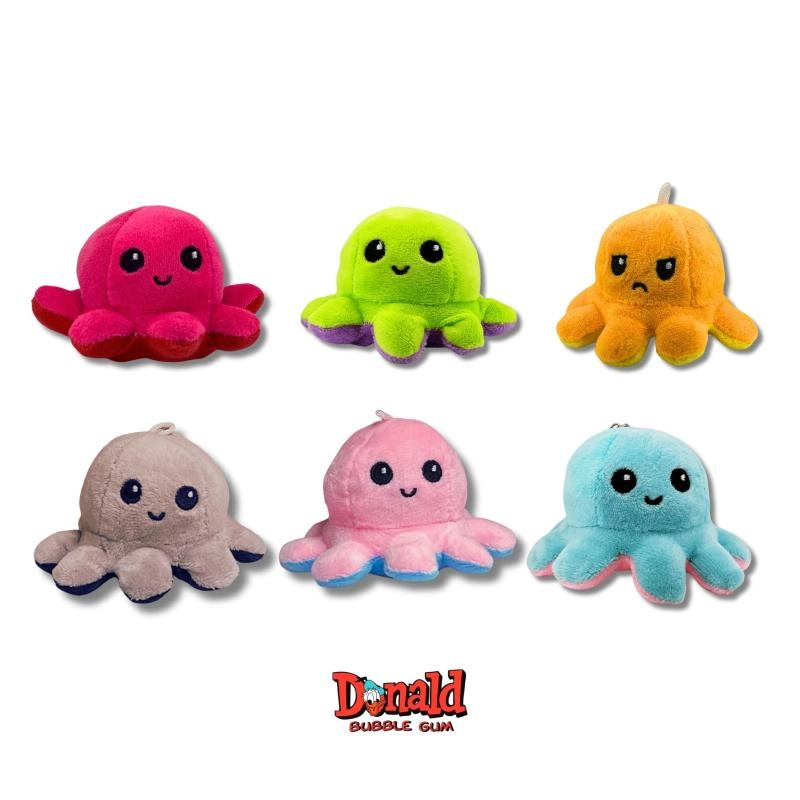 Objav hravý svet prekvapení! Flip plyšová chobotnica ukrýva dva odlišné výrazy – stačí ju jednoducho prevrátiť a zmeniť náladu aj vzhľad. V každej kapsule navyše nájdeš 5 legendárnych žuvačiek DONALD, ktoré potešia chuťou aj nostalgiou.