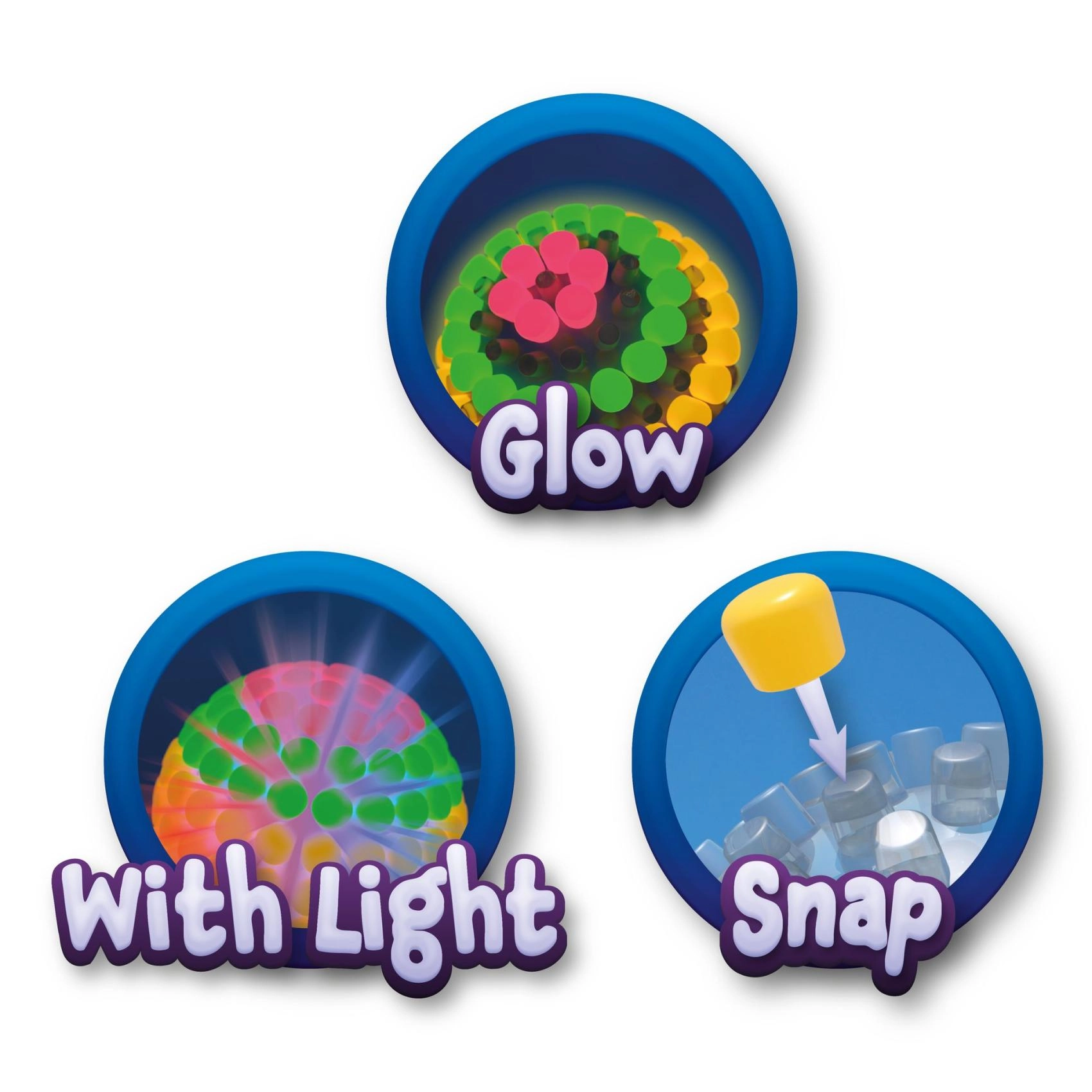 Táto kreatívna sada deťom umožní zostaviť originálnu svietiacu loptičku podľa vlastnej fantázie. Jednotlivé plastové dieliky sa ľahko spájajú a po dokončení loptička vďaka batériám svieti a pri dopade efektne bliká. Zábava, ktorá baví doma aj vonku, a to cez deň aj po zotmení.