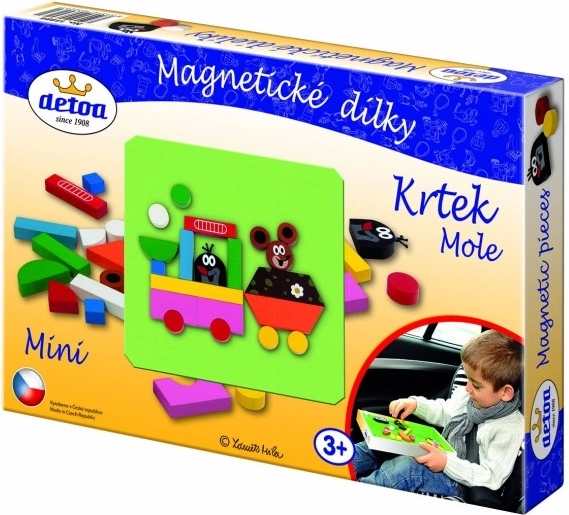 Objavte čaro klasickej českej hračky s magnetickými dielikmi Detoa na motívy obľúbeného Krtka. Drevené prvky sú podlepené magnetom, takže skvele držia na magnetických tabuľiach, chladničke či iných kovových plochách. Sada je ideálna na voľnú hru, skladanie príbehov aj prvé kreatívne tvorenie.
