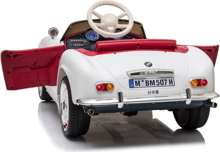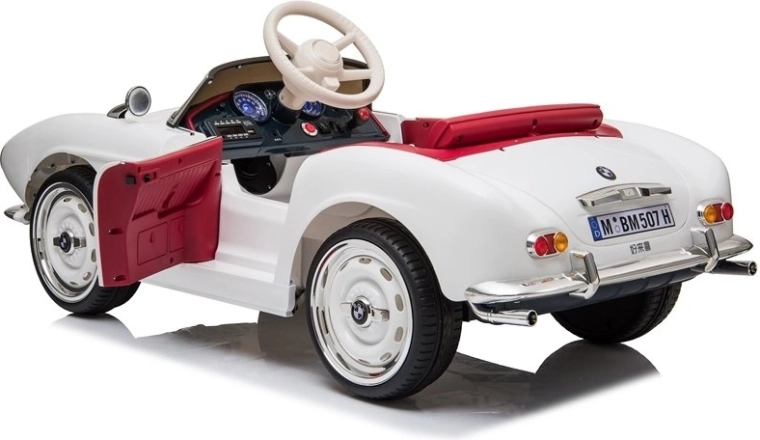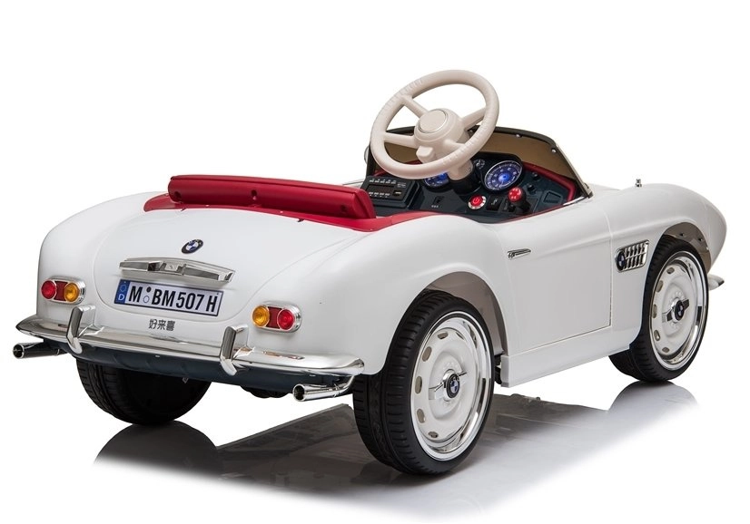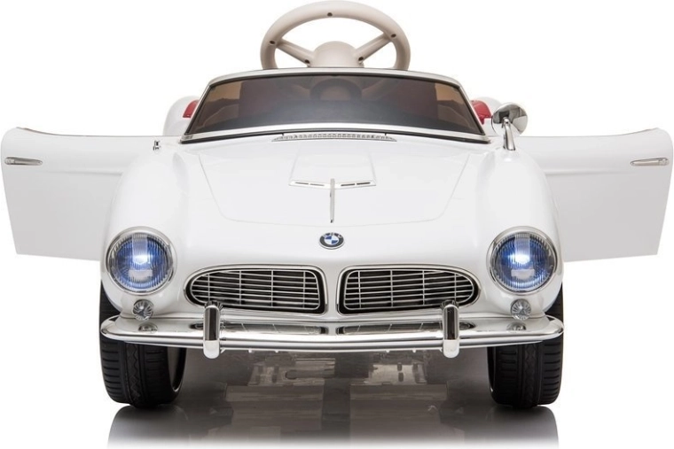 Elektrické autíčko BMW Retro v bielej farbe očarí nadčasovým vzhľadom a premyslenými detailmi. Deti potešia svietiace predné svetlá, otváracie dvere a autentická maska s chrómovanými prvkami. Robustná konštrukcia a komfortné sedadlo zaistia pohodlnú a bezpečnú jazdu.