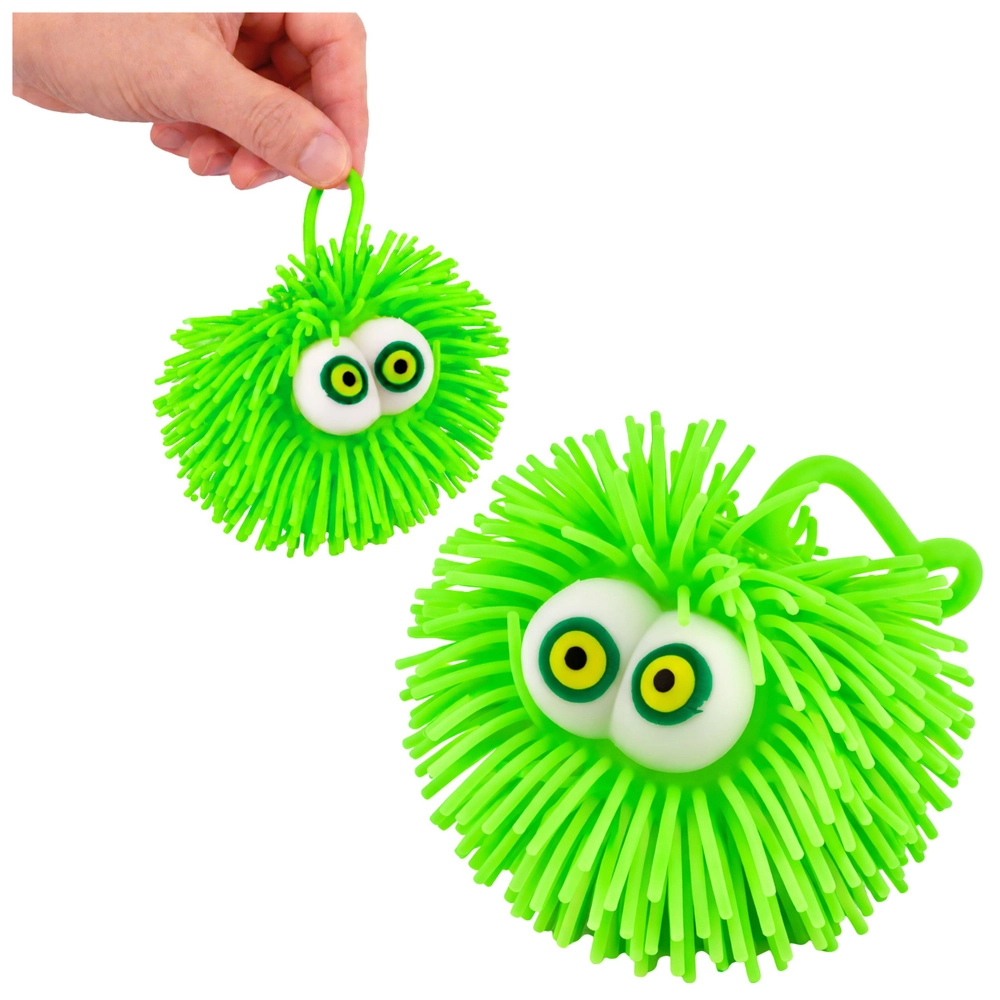 Antistresová puffer loptička s očami spája hmatovú stimuláciu, svetelné efekty a zábavu v jednom. Mäkké, poddajné výstupky poskytujú príjemný dotykový vnem, ktorý pomáha uvoľniť napätie, zlepšiť sústredenie a ponúknuť zmyslovú hru deťom aj dospelým.