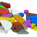 Manipulácia s tvarmi, ich otáčanie a ukladanie na magnetickú tabuľku posilňuje koordináciu oko–ruka a učí deti rozpoznávať farby aj tvary.