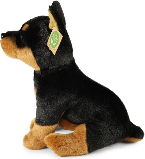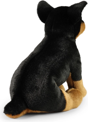 Verné sfarbenie, krásne tvarovaný ňufák a výrazné oči dodávajú plyšovému dobermanovi autentický výraz, ktorý si zamilujete na prvý pohľad.