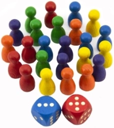 Náhradné drevené figúrky 25 mm a 2 kocky pre spoločenské hry