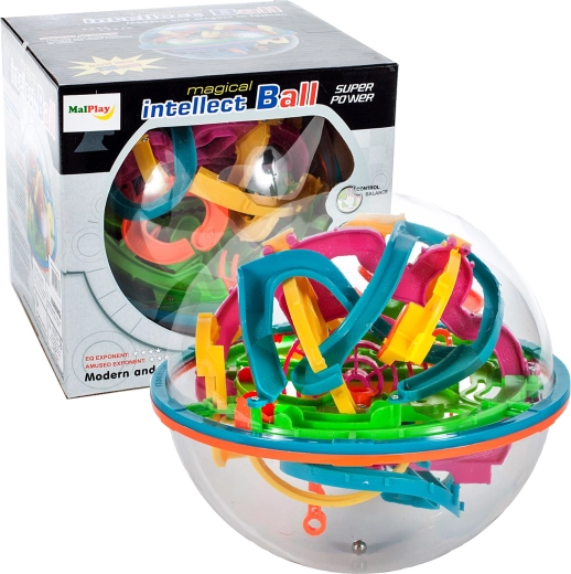 Magická guľa Labyrint je zábavná 3D skladačka, v ktorej vediete kovovú guličku po zakrútených dráhach a prekonávate prekážky. Kompaktné prevedenie sa ľahko drží v ruke a je perfektné na cesty, do školy aj na domáci relax.
