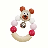 Roztomilá drevená hrkálka s medvedíkom v ružovej farbe poteší každé bábätko. Integrovaná rolnička jemne cinká, hrkálka je ľahučká a vďaka kompaktným rozmerom 7 × 9 cm sa skvele drží v malých rúčkach. Výrobok spĺňa prísne požiadavky EÚ na bezpečnosť hračiek a pýši sa certifikátom Bezpečné hračky.