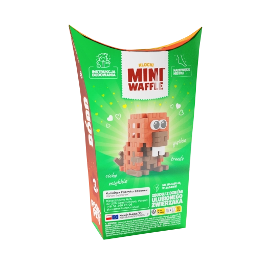 Stavebnica Mini Waffle Pocket Pets – bobor je ideálnou voľbou pre deti od 3 rokov, ktoré milujú tvorenie a príbehy. Vďaka jedinečným waffle dielikom môžu stavať v 2D aj 3D a rozvíjať fantáziu pri vytváraní vlastných zvieracích dobrodružstiev. Z figúrky bobra sa ľahko stane hrdina celej kolekcie Pocket Pets.