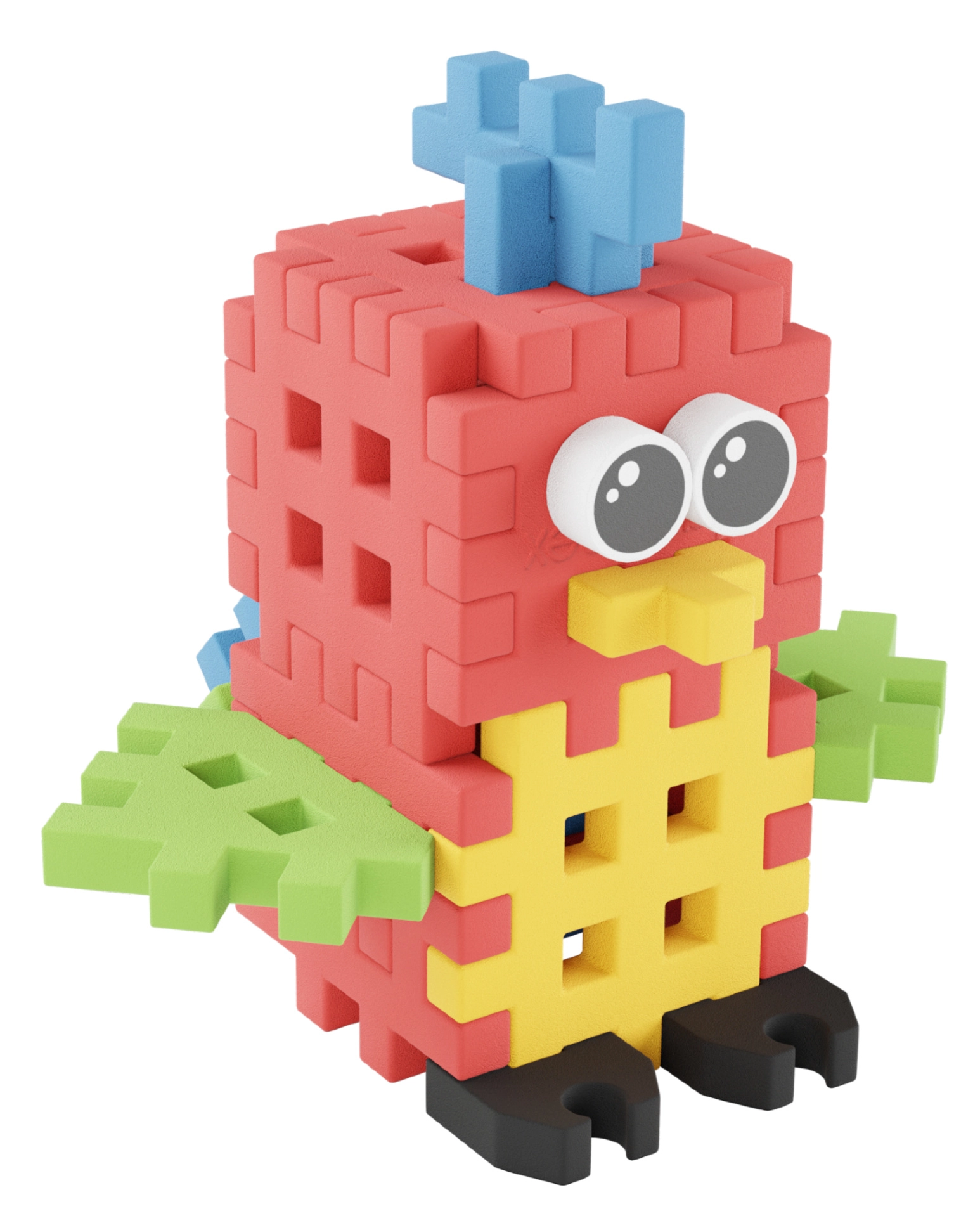- 25 dielikov na rýchle a zábavné stavanie figúrky papagája.