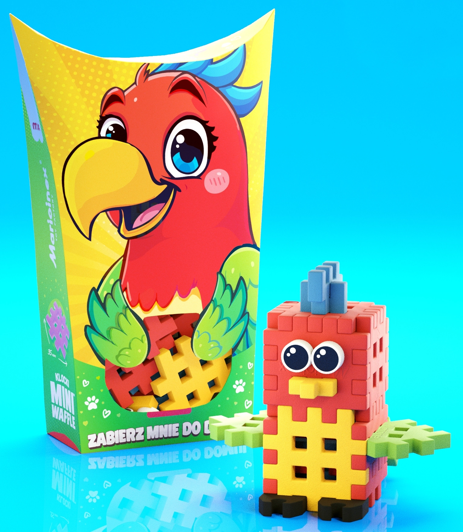 Mini Waffle Pocket Pets – papagáj je ideálnou voľbou pre malých staviteľov, ktorí milujú farebné postavičky a tvorenie. Vďaka jednoduchému spájaniu dielikov môžu deti stavať v 2D aj 3D, vytvárať vlastné príbehy a rozširovať svet zvieratiek o ďalšie sady Pocket Pets. Kompaktné balenie sa hodí na cesty aj ako drobný darček.