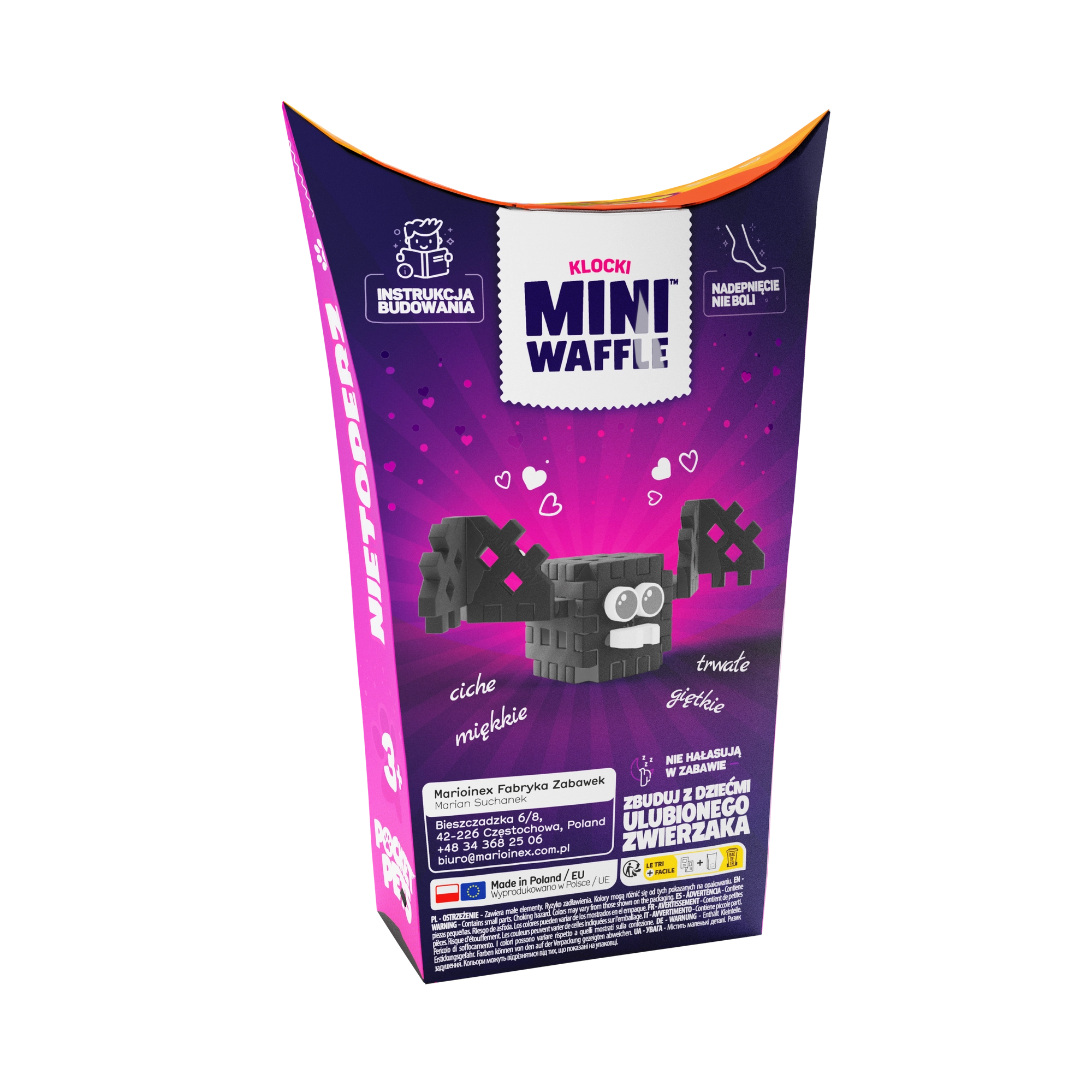 Objavte zábavu so stavebnicou Mini Waffle Pocket Pets – netopier od značky Marioinex. Kompaktná sada s 15 farebnými dielikmi umožní deťom postaviť roztomilú figúrku netopiera a rozvíjať kreativitu, jemnú motoriku a logické myslenie. Diely sú elastické, odolné a bezpečné, ľahko sa spájajú aj rozpájajú a skvele ladia s ďalšími setmi Mini Waffle.