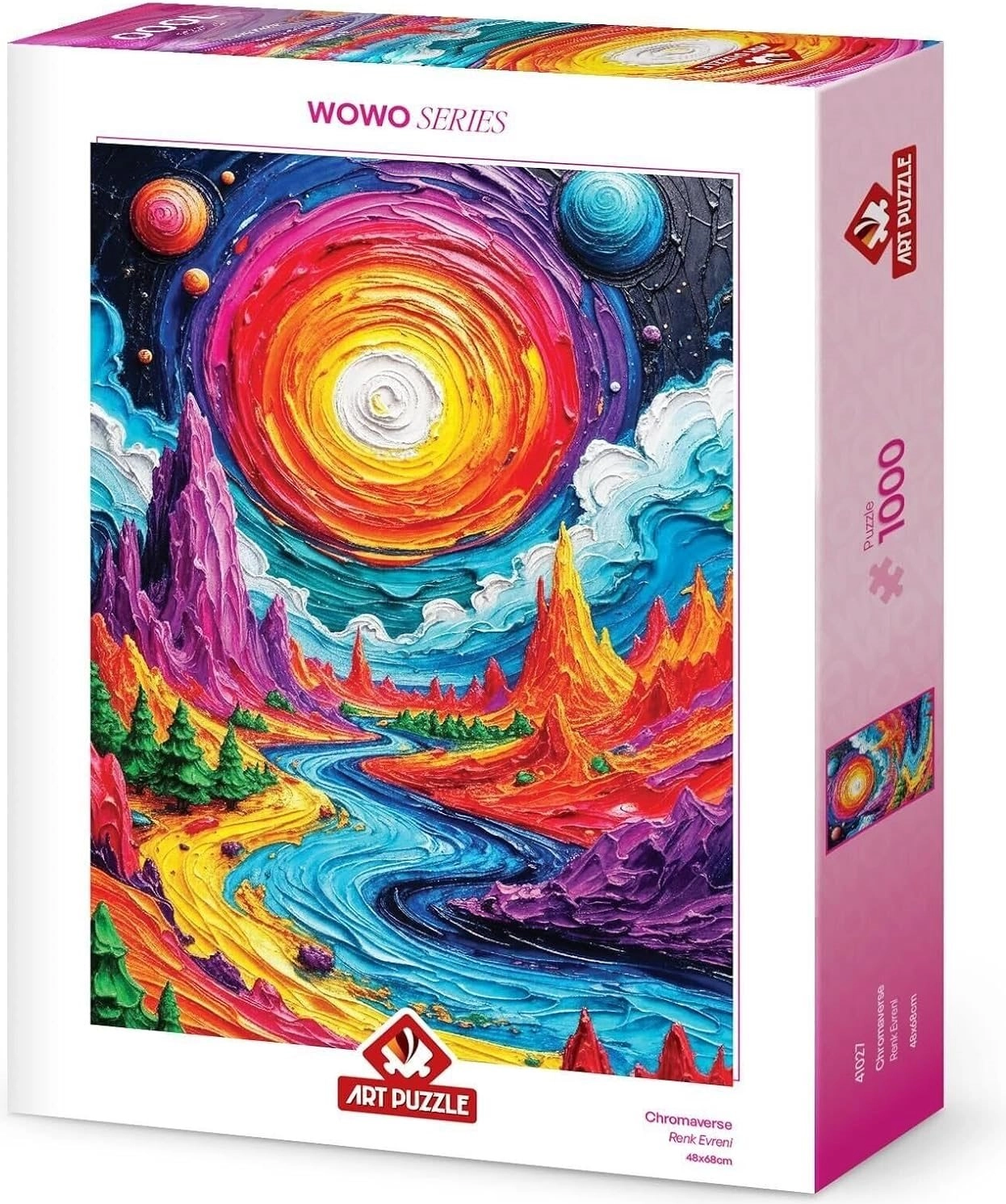 Objavte farebný svet skladania s puzzle Chromaverse s 1000 dielikmi, ktoré po zložení vytvoria pôsobivý obraz s rozmermi 48 × 68 cm. Ideálna voľba na relax, tréning sústredenia a radosť z dokonale zapadajúcich dielikov.